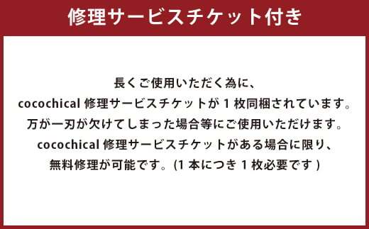 長くご使用いただく為に、cocochical修理サービスチケットが1枚同梱されています。